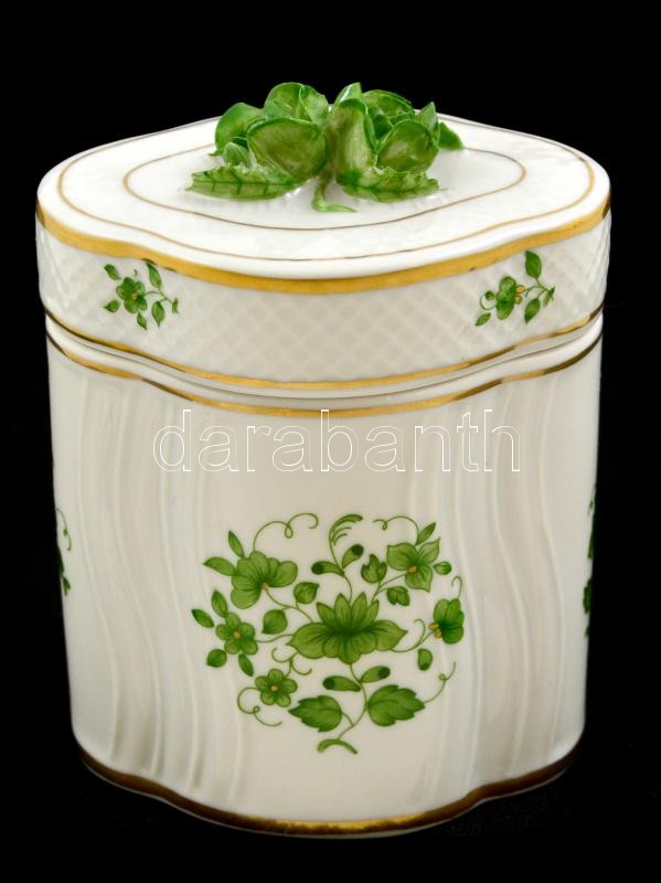 Leírás: Hollóházi virágmintás porcelán dobozka, kézzel festett, jelzett, hibátlan, m: 11 cm