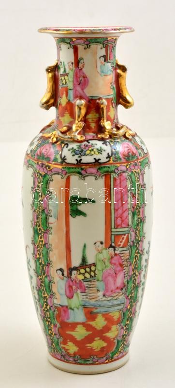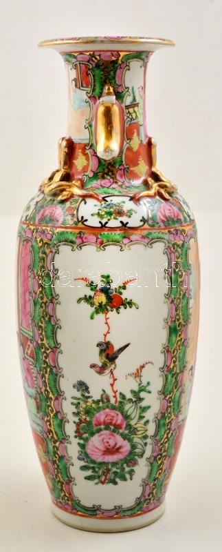 Leírás: Jelzett kézzel festett kínai váza, kopott aranyozással, m:31 cm