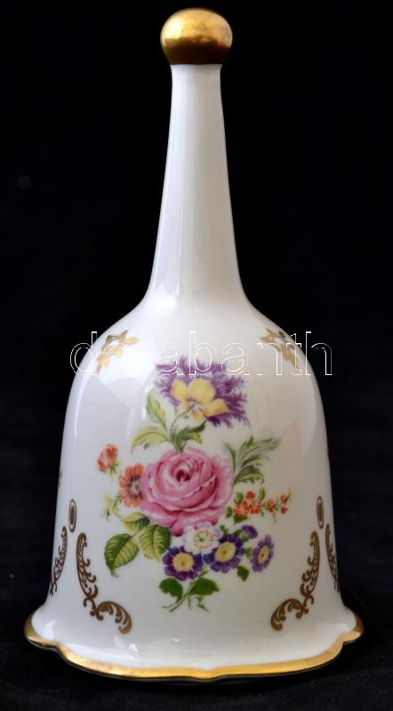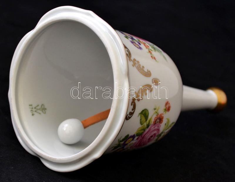 Leírás: Wallendorf asztali csengő, részben kézzel festett, jelzett, m:19 cm