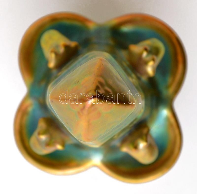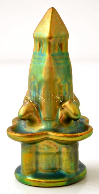 Leírás: Zsolnay eozin mázas kút, jelzett, kis karcolásnyomokkal, m: 14 cm