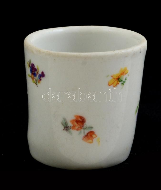 Leírás: Zsolnay virág mintás tégely, matricás, jelzett, kopott, m:4,5 cm
