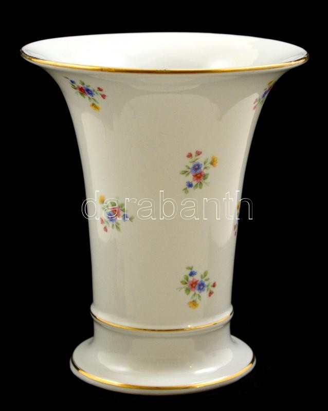Leírás: Zsolnay virágmintás porcelán váza, matricás, jelzett, peremén apró hibákkal, m: 17 cm