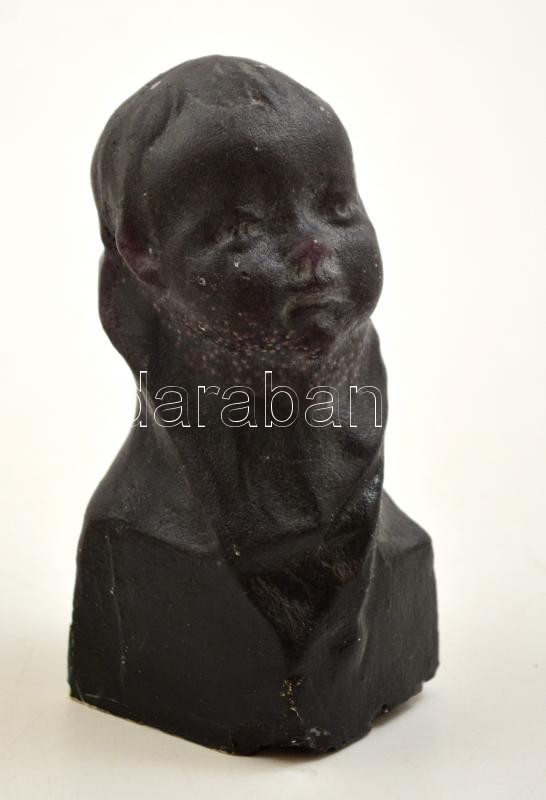 Leírás: Gyerekfej, üveg szobrocska, formába öntött, jelzés nélkül, sérült, m: 11,5 cm
