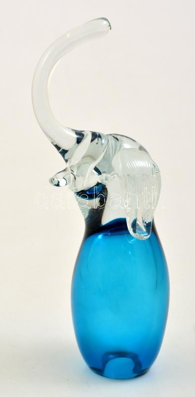 Leírás: Muránói fújt elefánt figura, több rétegű, jelzés nélkül ,alján nagyon apró csorbákkal, m: 24,5 cm