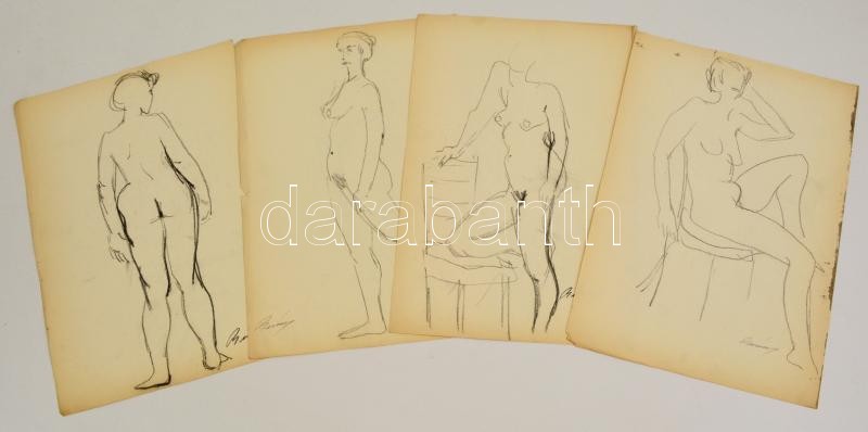 Leírás: Berény jelzéssel: Vázlat rajzok (4 db). Ceruza,papír, 30×21 cm