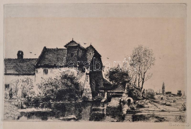 Leírás: Boldizsár István (1897-1984): Régi vízimalom. Rézkarc, papír, jelzett, 18×28 cm