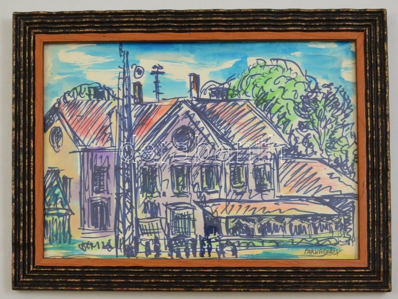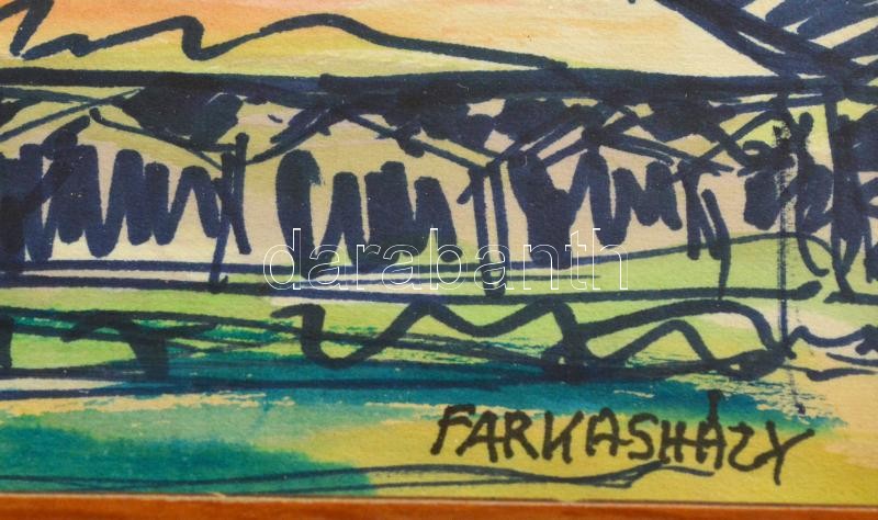 Leírás: Farkasházy jelzéssel: Curia. Akvarell-filc, papír, üvegezett kereteben, 20×29 cm
