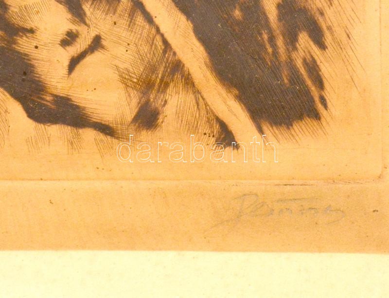 Leírás: Glatz Oszkár(1872-1958)-Prihoda István (1891-1956): Lány kendőben, rézkarc, papír, jelzett, 36×24 cm