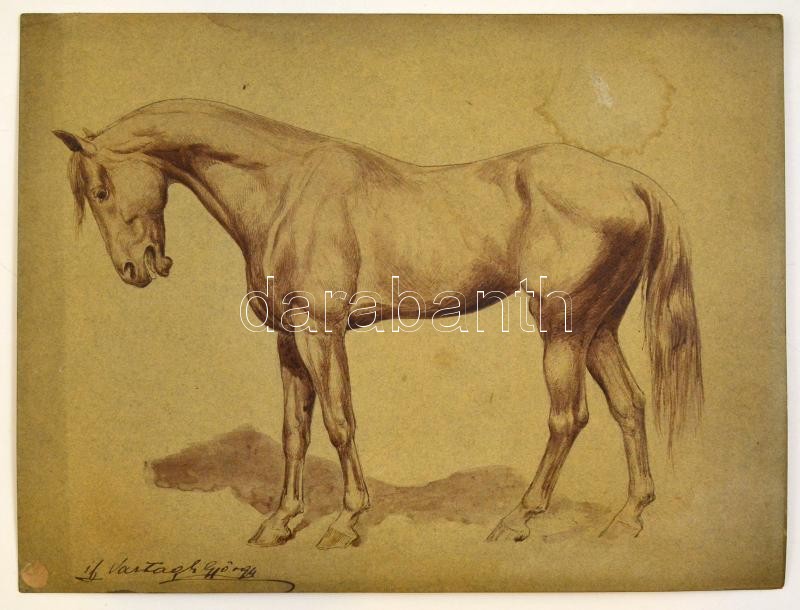 Leírás: Ifj. Vastagh György (1868-1946): Ló. Tus-akvarell, papír, foltos, jelzett, 23,5×31,5 cm