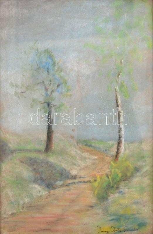 Leírás: Iványi jelzéssel: Fák az út mellett. Pasztell, papír, foltos, üvegezett keretben, 48×32 cm