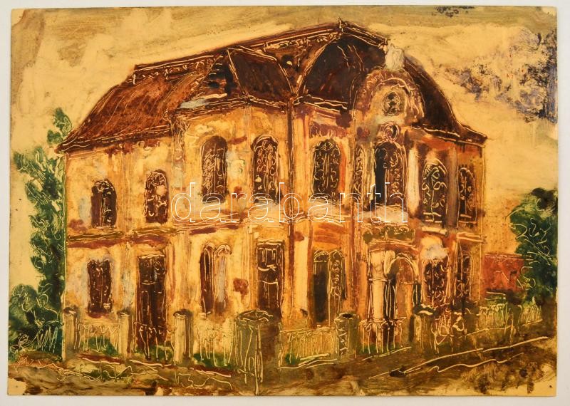 Leírás: Jelzés nélkül: Polgári villa. Tempera, papír. 31x42 cm