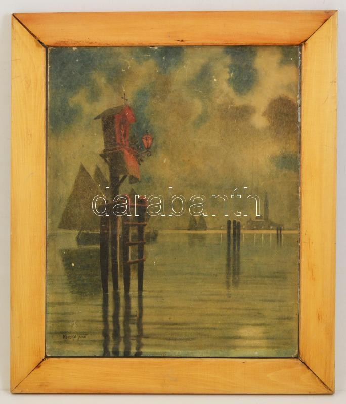Leírás: Koszkol jelzéssel: Vizi Boldogasszony. Akvarell, karton, foltos, üvegezett keretben