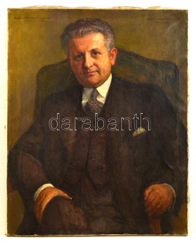 Leírás: Kunffy Lajos (1869-1962): Szirmay Fóris László (1895-?) későbbi miniszteri tanácsos portréja 1941, olaj, vászon, jelzett, kis sérüléssel, 81×64,5 cm