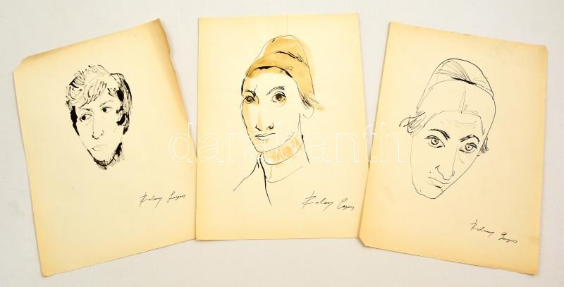 Leírás: Szalay jelzéssel: Női portrék ( 3 db). Tus, papír, 29×20 cm (3 ×)