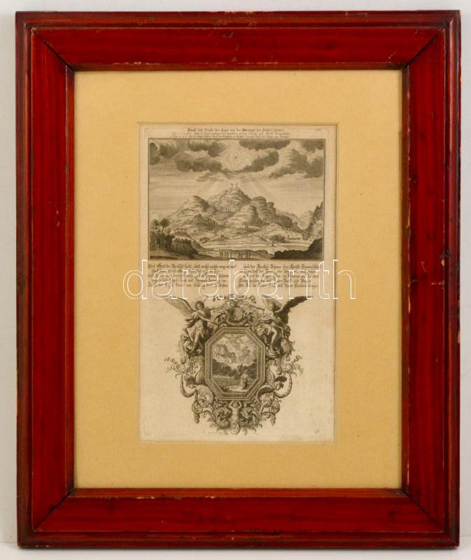 Leírás: cca 1700 Biblia metszet. Krauss, Johann Ulrich: Historischer Bilder Bibel, Augsburg, 1705. könyvéből. 18x28 cm. üvegezett keretben.