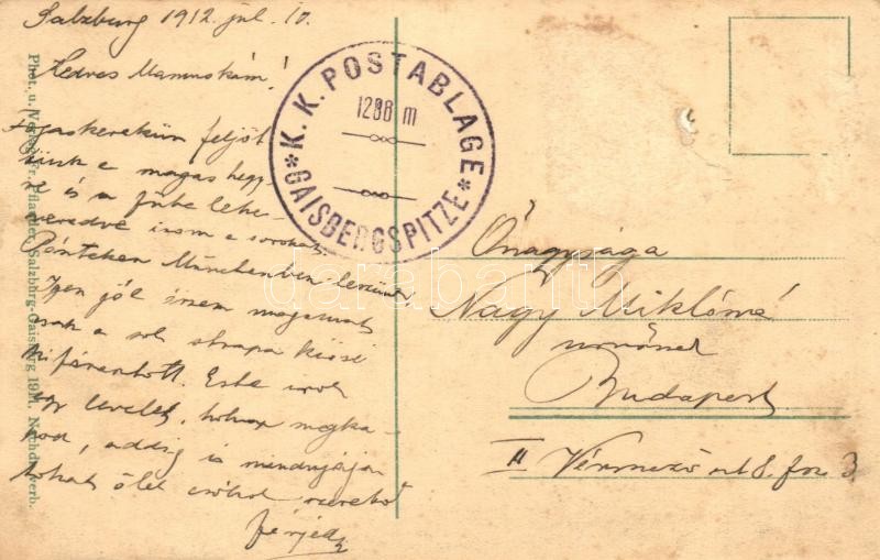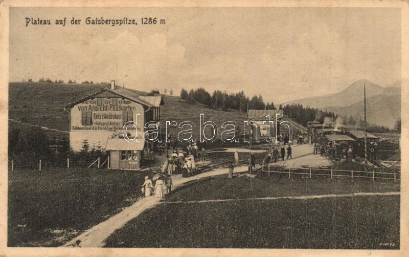 1912 Gaisbergspitze, Plateau, Nur hier der Verkauf von Ansicht-Postkarten Reise Andenken, Fotograf, Atelier Geldwechsel K.k. Postablage Packetbeförderung / funicular railway station with trains, postcard shop (Rb)