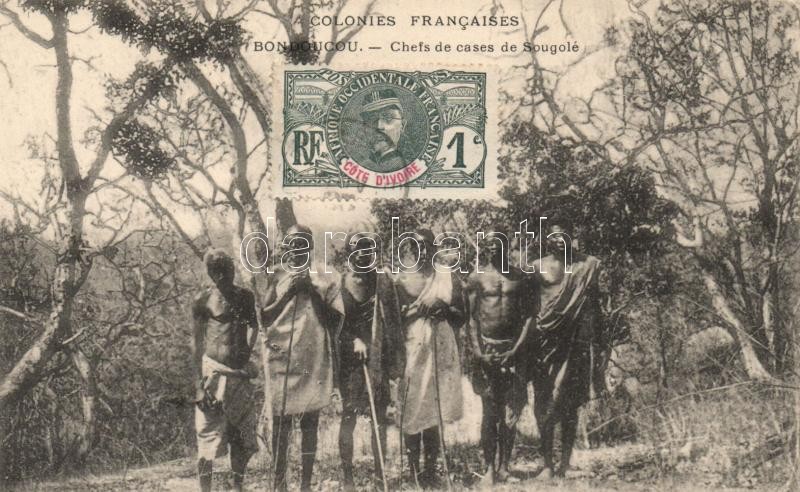 Leírás: Bondoukou, Bondoucou; Chefs de cases de Sougole / Chiefs of huts of Sougole (fa)
