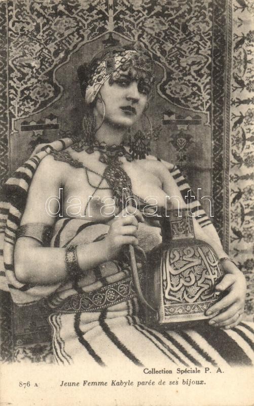 Collection Spéciale P.A. 876. A. Jeune Femme Kabyle parée de ses bijou... https://www.darabanth.com/hu/337-Gyorsarveres/337.0/Kepeslapok/Folklor~2000058/Collection-Speciale-PA-876-A-Jeune-Femme-Kabyle-paree-de-ses-bijoux-Half-naked-young-Kabyle-~II1865693
