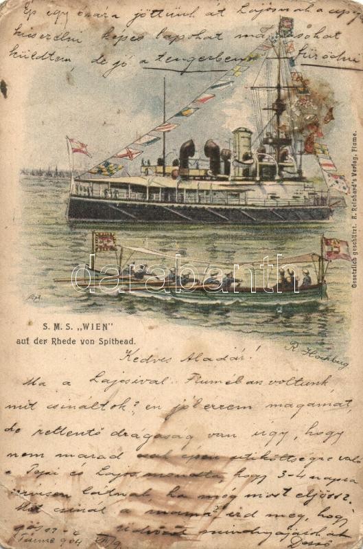 Leírás: 1904 SMS Wien auf der Rhede von Spithead. K.u.K. Kriegsmarine art postcard. A. Reinhard's Verlag Fiume s: R. Hochberg (EB)