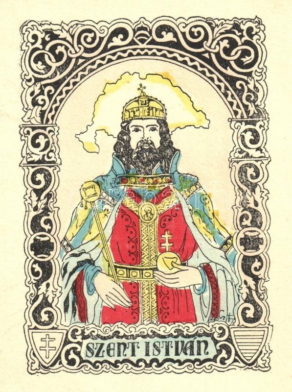 Leírás: Szent István. Kiadja a Délvidéki Egyetemi és Főiskolai Hallgatók Egyesülete / Stephen I of Hungary, Kingdom of Hungary. Irredenta art postcard (EB)