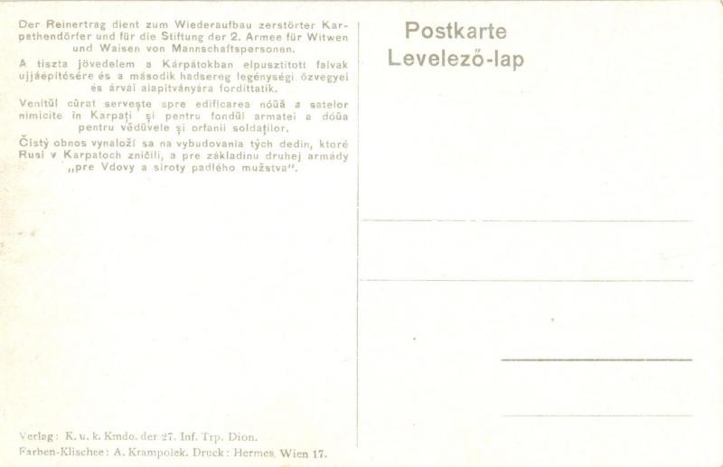 Leírás: Weltkrieg 1914-1916 - K.u.K. Feldjäger-Bataillon Nr. 29. Verlag K.u.K. Kmdo. der 27. Inf. Trp. Dion. / WWI Austro-Hungarian military s: Hans Larwin