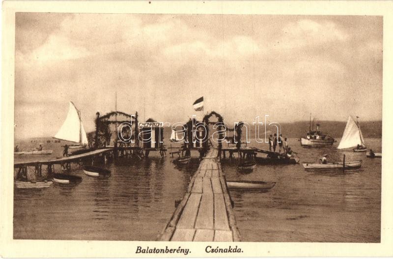 Leírás: Balatonberény, Csónakda, vitorláshajók, magyar zászló