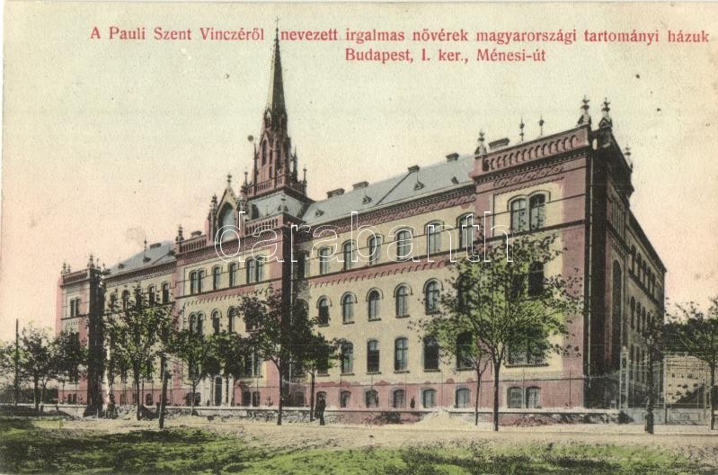 Leírás: Budapest XI. Pauli Szent Vincéről nevezett irgalmas nővérek magyarországi tartományi háza. Ménesi út 30.