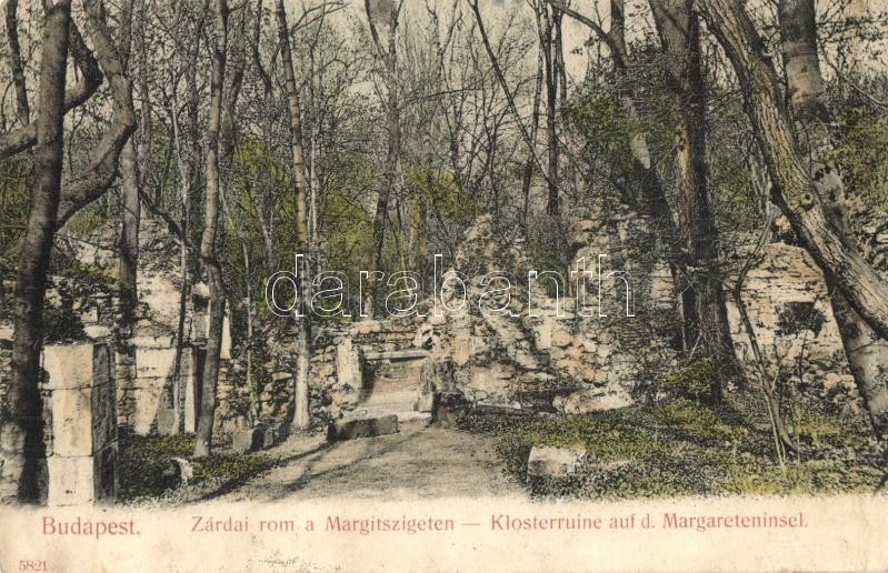 Leírás: Budapest XIII. Margitsziget, zárdai rom. Taussig Arthur 5821. (ázott sarok / wet corner)