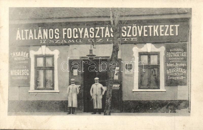Budapest XXIII. Soroksár, Grassalkovich utca 150. Általános Fogyasztási Szövetkezet 17. számú üzlete, bejárat; hátoldalon Wágner hangszerkirály reklám (fl)