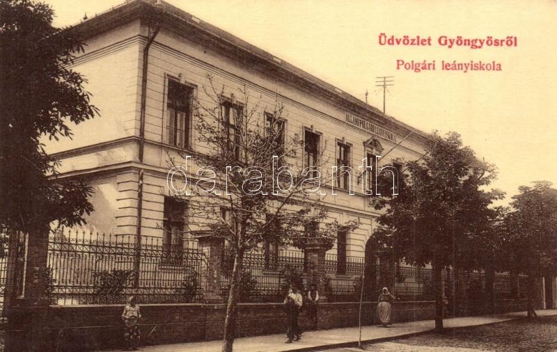 Gyöngyös, Állami Polgári leányiskola. 10. https://www.darabanth.com/hu/337-Gyorsarveres/337.0/Kepeslapok/Magyarorszag~2000005/Gyongyos-Allami-Polgari-leanyiskola-10~II1893726