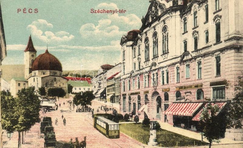 Pécs, Széchenyi tér, villamos, drogéria https://www.darabanth.com/hu/337-Gyorsarveres/337.0/Kepeslapok/Magyarorszag~2000005/Pecs-Szechenyi-ter-villamos-drogeria~II1894097