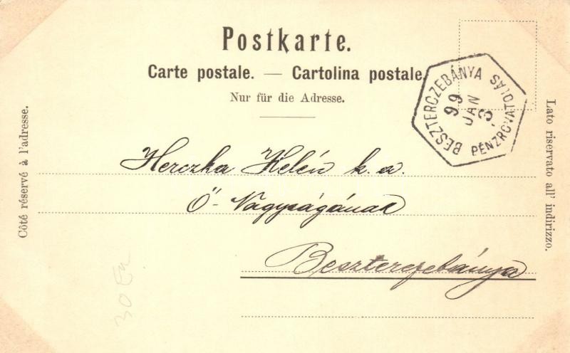 1899 Rhonegletscher, Rhone Glacier; La Rhone s'enfayant vers le midi / Rhone with human face. F. Killinger No. 120. litho + "Besztercebánya Pénzrovátolás"
