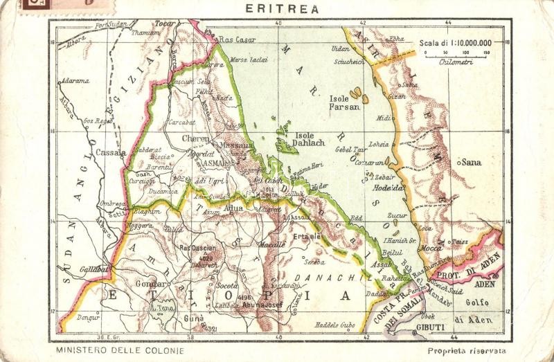 Map of Eritrea. Servizio Cartografico del Ministero delle Colonie (EB) https://www.darabanth.com/hu/337-Gyorsarveres/337.0/Kepeslapok/Terkep~2000080/Map-of-Eritrea-Servizio-Cartografico-del-Ministero-delle-Colonie-EB~II1877196