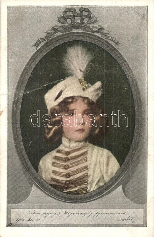 Leírás: Ő cs. és kir. Felsége Zita királyné ajándéka az Országos Gyermekvédő Ligának. Habsburg Ottó koronaherceg / Otto, the Crown Prince charity card (fa)