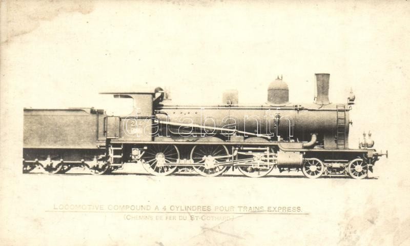 Locomotive compound a 4 cylindres pour trains express (Chemins de fer ... https://www.darabanth.com/hu/337-Gyorsarveres/337.0/Kepeslapok/Vonat~2000084/Locomotive-compound-a-4-cylindres-pour-trains-express-Chemins-de-fer-du-St-Gothard-photo-fl~II1894590