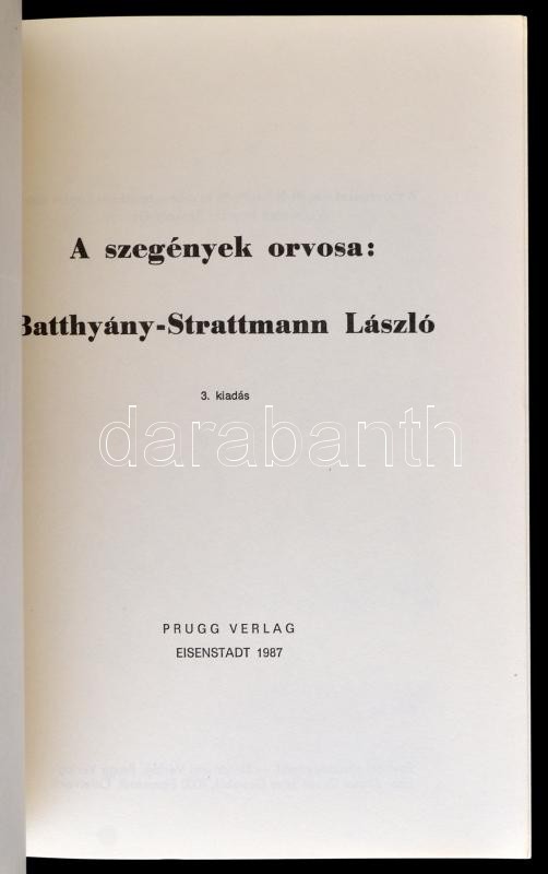 Leírás: A szegények orvosa: Batthyány-Strattmann László. Eisenstadt (Kismarton), 1987, Prugg Verlag. Harmadik kiadás. Kiadói papírkötés.