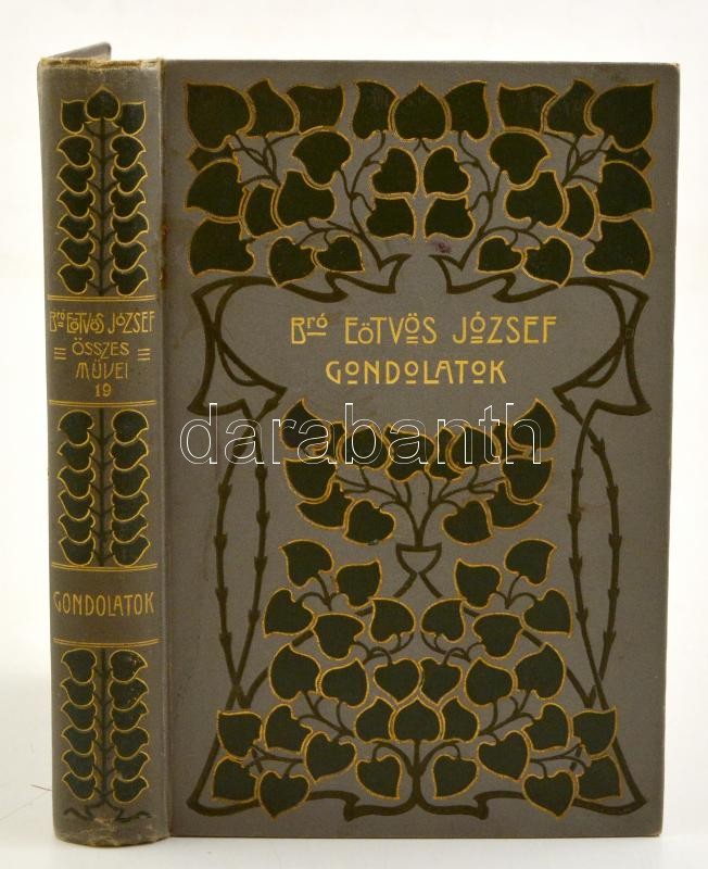 Eötvös József: Gondolatok. Báró Eötvös József összes munkái XIX. kötetet. Bp.,1903, Révai. Kiadói szecessziós aranyozott, festett egészvászon-kötés, Gottermayer-kötés, jó állapotban.