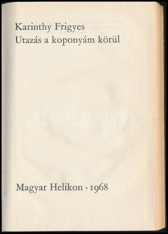 Karinthy Frigyes: Utazás a koponyám körül. Bp.,1968, Magyar Helikon, (... https://www.darabanth.com/hu/337-Gyorsarveres/337.0/Konyvek/Konyvek-Egyeb-ritkasagok~1000018/Karinthy-Frigyes-Utazas-a-koponyam-korul-Bp-1968-Magyar-Helikon-Kner-Nyomda-Kiadoi-nyl-~II1893433