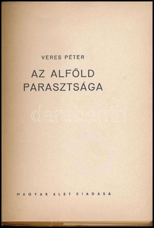 Veres Péter: Az alföld parasztsága. Bp.,(1939), Magyar Élet, ("Jövő"-ny.), 89+7 p. Második kiadás. Kiadói papírkötés, kiadói papír védőborítóban, szakadt borítóval.
