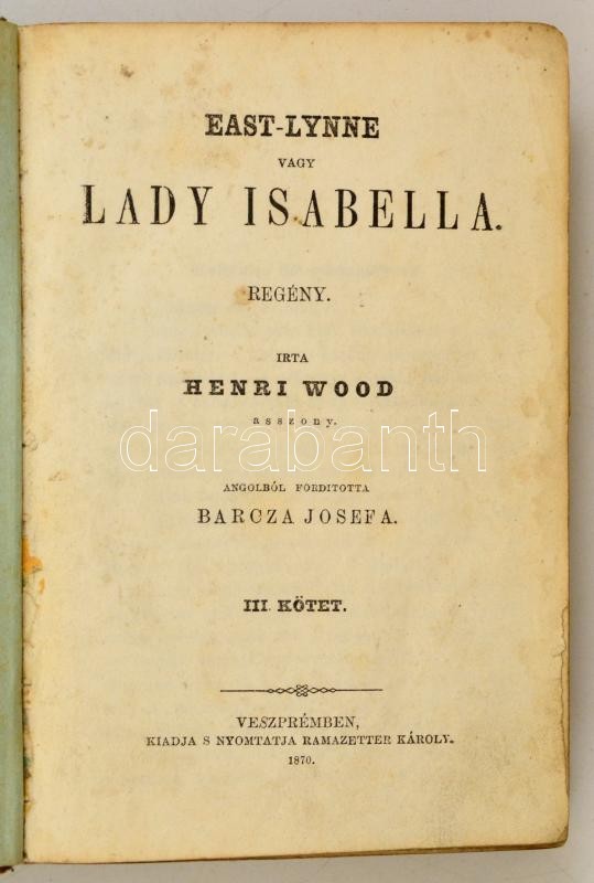 Wood, Henri: East-Lynne vagy Lady Isabella. III-IV-V. kötet. Fordított... https://www.darabanth.com/hu/337-Gyorsarveres/337.0/Konyvek/Konyvek-Egyeb-ritkasagok~1000018/Wood-Henri-East-Lynne-vagy-Lady-Isabella-III-IV-V-kotet-Forditotta-Barcza-Josefa-Veszprem-~II1882904