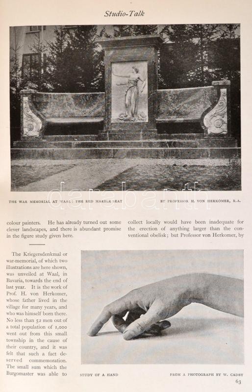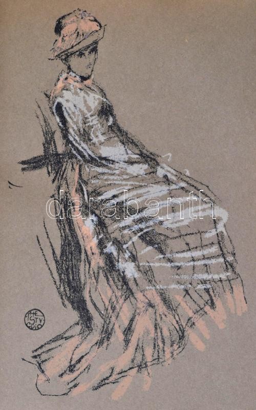 1903 The Studio an Illustrated Magazine- of Fine & Applied Art. XXIX. Volume, 312 p. Kiadói kissé kopott aranyozott egészvászon-kötés. Angol nyelvű, művészeti folyóirat, számos érdekes írással, egészoldalas fekete-fehér, és részben színes táblákkal, gazdag szövegközti képanyaggal illusztrálva. Közte James Abbott McNeill Whistler (1834-1903): Portrait Study in Pastel c. munkájának Thomas Robert Way (1861-1913) általi litografált reprodukciójával, 28x19 cm Jó állapotban. /1903 The Studio an Illustrated Magazine- of Fine & Applied Art. XXIX. Volume, 312 p. With many interesting writings, and lot of photos. Linen-binding, with little bit worn cover. With: James Abbott McNeill Whistler (1834-1903): Portrait Study in Pastel. Reproduced in Lithography by Thomas Robert Way (1861-1913), 28x19 cm. In English language. In good condition.