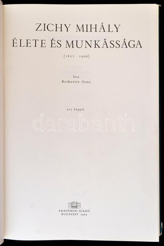 Berkovits Ilona: Zichy Mihály élete és munkássága. (1827-1906.) Bp.,1964, Akadémiai Kiadó, 1 t.+381+CXLIII t. Kiadói egészvászon-kötés, kiadói papír védőborítóban.