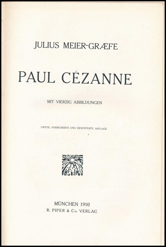 Julius Meier-Graefe: Paul Cézanne. München, 1910, R. Piper & C. Fe... https://www.darabanth.com/hu/337-Gyorsarveres/337.0/Konyvek/Konyvek-Epiteszet-muveszet~1000006/Julius-Meier-Graefe-Paul-Cezanne-Munchen-1910-R-Piper-C-Fekete-feher-fotokkal-illusztra~II1893253