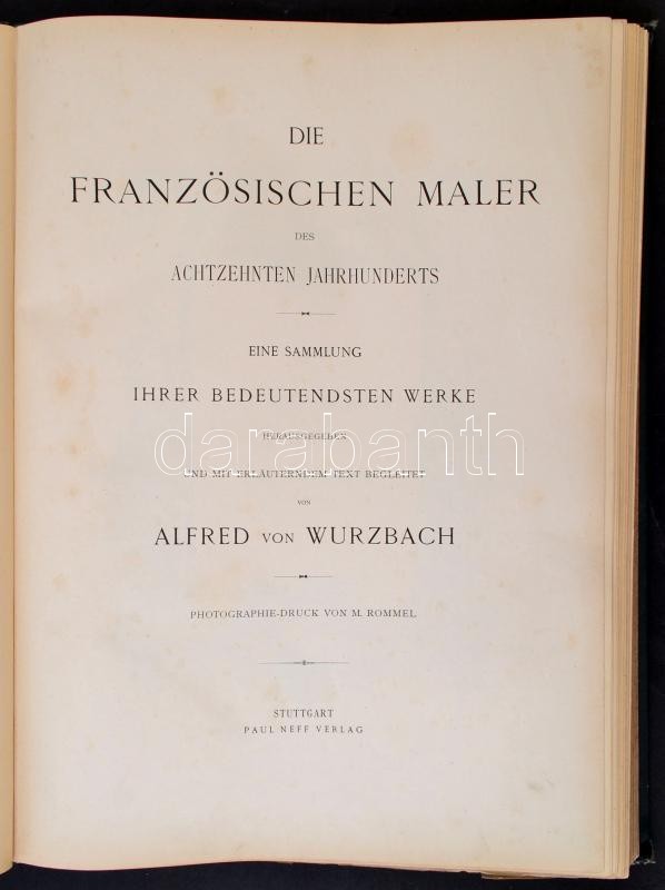 Wurzbach Alfred von,: Die französischen Maler des achtzehnten Jahrhunderts. Eine Sammlung ihrer bedeutendsten Werke. Stuttgart, (1879) Paul Neff,