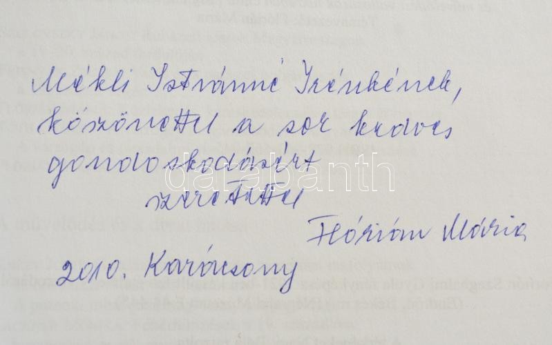 A szerkesztő, Flórián Mária (1940-) etnográfus, muzeológus által dedikált, dátumozva.