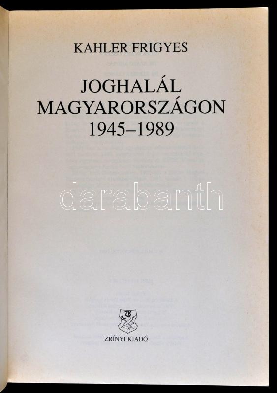 Leírás: Kahler Frigyes: Joghalál Magyarországon 1945-1989. Bp., 1993, Zrínyi. Papírkötésben, jó állapotban.