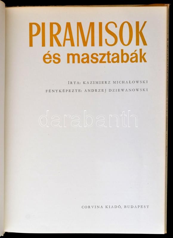 Kazimierz Michalowski: Piramisok és masztabák. Fordította: Pályi Andrá... https://www.darabanth.com/hu/337-Gyorsarveres/337.0/Konyvek/Konyvek-Tortenelem~1000004/Kazimierz-Michalowski-Piramisok-es-masztabak-Forditotta-Palyi-Andras-Bp-1973-Corvina-Ki~II1891730