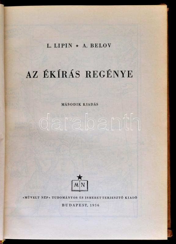 L. Lipin-A. Belov: Az ékírás regénye. Fordította: Borzsák István. Bp., 1956, Művelt Nép. Második kiadás. Kiadói félvászon-kötés, kiadói papír védőborítóban, jó állapotban. Megjelent 3000 példányban.