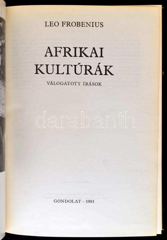 Leo Frobenius: Afrikai kultúrák. Válogatott írások. Szerkesztette, válogatta, az utószót és a jegyzetek írta, a fordítást ellenőrizte: Bodrogi Tibor. Fordította: G. Beke Margit, Kárpáty Csilla, Soltész Gáspár. Bp.,1981, Gondolat. Kiadói egészvászon-kötés, kiadói papír védőborítóban, jó állapotban.
