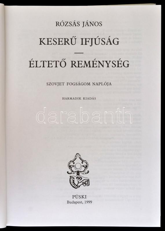 Rózsás János: Keserű ifjúság. Életető reménység. Szovjet fogságom napl... https://www.darabanth.com/hu/337-Gyorsarveres/337.0/Konyvek/Konyvek-Tortenelem~1000004/Rozsas-Janos-Keseru-ifjusag-Eleteto-remenyseg-Szovjet-fogsagom-naploja-Bp-1999-Pu~II1893754